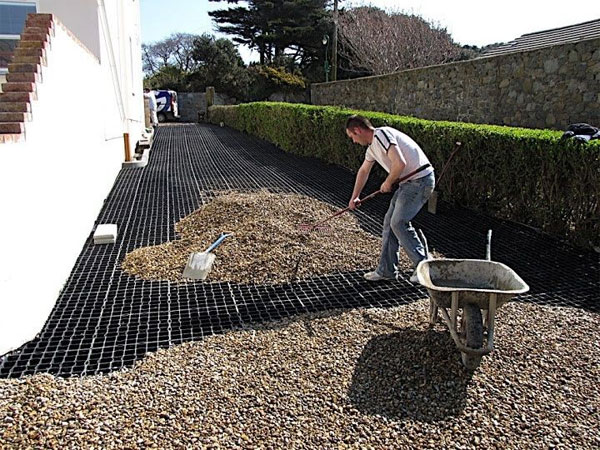 如果你家庭院需要保持较低的造价,同时增加简单易维护的效果,采用聚丙烯砾石网格垫作为庭院铺装和基础会是一个好办法。聚丙烯属于再生塑料,作为铺装基础环保安全没有污染和辐射。它具有蜂窝结构,成为市场上重量最轻、最坚固、最灵活的铺装用材。砾石网格垫利用每一个小格室填充砾石,这样会分散石料的重量,防止压实,并促进雨水补给;有利于打造稳定、安全、环保的庭院花园绿化解决方案。