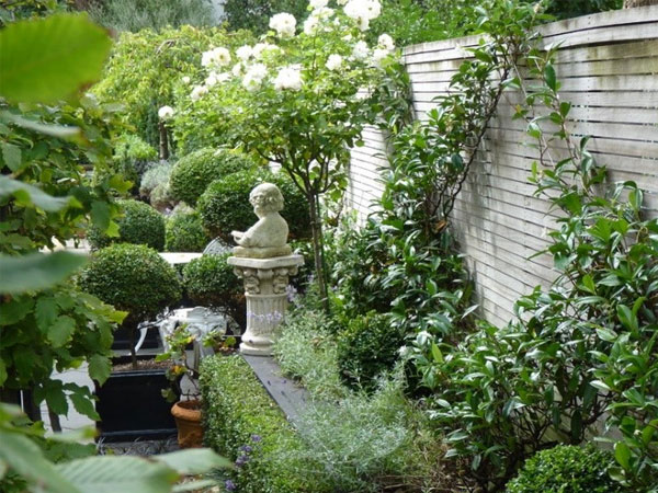 如果你想给你的院子绿化效果,增加一些人工修剪结合自然化的品质体验,可以考虑点、线、面相结合的绿化造景方式。例如你可以将花园栏栅围墙作为种植结构面景,并采用45度斜拼的造型方式,改变植物攀爬路线。你还可以沿着种植池壁,在地面栽植大叶黄杨,并修剪整齐,高度保持一致的结构线景效果。而在花池的内部点缀大叶黄杨、石楠或冬青灌木球,形成种植结构点景的效果。点景雕塑也同样可以是结构点,增强花园生活和艺术格调。